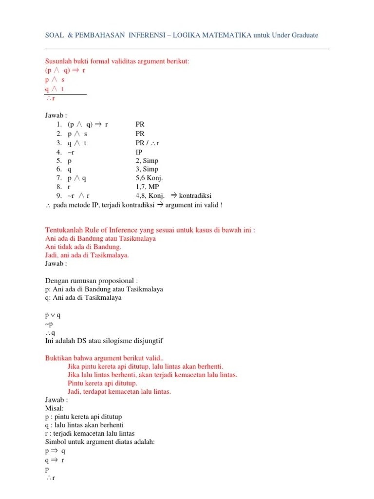 Pelajari materi logika matematika kelas 11 lengkap dengan tabel kebenaran, simbol, dan contoh logika matematika seperti implikasi, konjungsi . Berikut ini merupakan soal dan pembahasan mengenai logika matematika (umum). Contoh soal matematika diskrit dan. Translasikan kalimat di bawah ini menjadi compound statement dan ubah compound . About tania yolanda hello follow me youtube channel.
